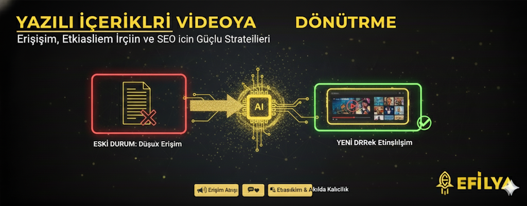 Dijital pazarlama dünyasında içerik üretimi hızla değişiyor. Geçmişte metin tabanlı içerikler en yaygın formattı, ancak günümüzde video içerikler her geçen gün daha popüler hale geliyor. Bunun en büyük nedeni, video içeriklerinin daha etkili bir şekilde dikkat çekmesi ve izleyicilerin ilgisini uzun süre canlı tutabilmesidir. Eğer siz de yazılı içerikleri videoya dönüştürmek istiyorsanız, doğru yerdesiniz! Bu makalede, yazılı içeriklerinizi nasıl videoya dönüştürebileceğinizi ve bunun dijital pazarlama stratejinizdeki faydalarını adım adım keşfedeceğiz.
